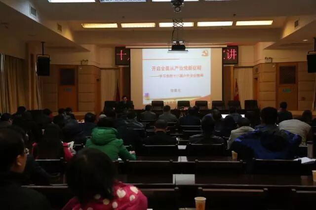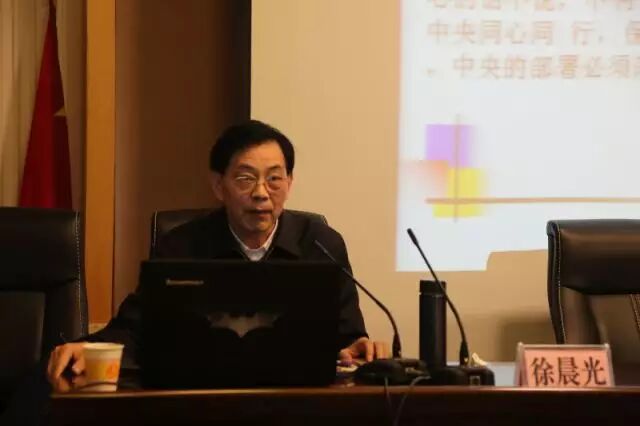 徐晨光以《开启全面从严治党新征程》为题,深刻分析了十八届六中全会重大意义,从全面加强和规范党内政治生活,全面落实党内监督责任,突出抓好领导干部这个关键,把从严治党落细落实等方面进行了系统阐释和深入讲解。他指出,全会确立了核心,完善了制度,确定了途径,明确了使命,意义重大。特别是全会确立了习近平总书记的核心地位,正式提出“以习近平同志为核心的党中央”,是人心所向,党性所归、军心所盼,对凝聚全党全军全国各族人民力量,保证党和国家兴旺发达长治久安,具有十分重大而深远的意义,我们要自觉尊重核心,维护核心,服从核心,紧跟核心。他指出,建设廉洁政治,坚决反对腐败,是加强和规范党内政治生活的重要任务,要坚决落实党委主体责任和纪委监督责任。他结合学习体会,指出领导干部要注重家庭、家风、家教、教育管理好亲属和身边工作人员,自觉净化社交圈、生活圈和朋友圈,打铁自身硬,自觉做落实全会精神的表率。他指出,要把从严治党落细落实,严格组织生活,强化党员意识,强化纪律约束。最后他以“人生像链条,成功来自环环相扣,失败只要一环破损”等几个生动比喻结束了精彩讲课,获得了满堂掌声。