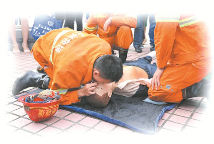 救援队员为群众演示心肺复苏要领