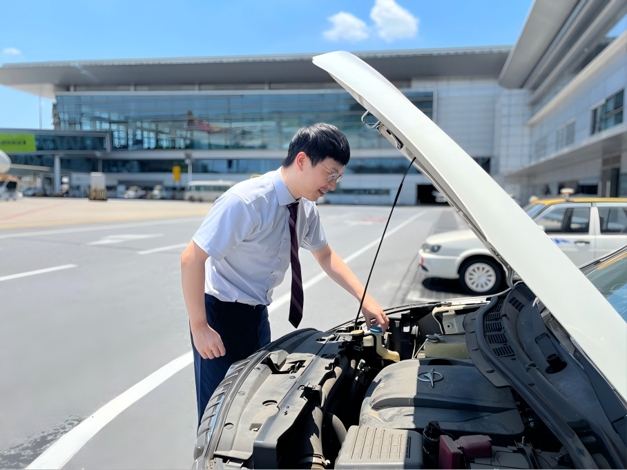 长沙机场客运服务部每日开展车辆“健康体检”,排查隐患,确保机坪运行安全。